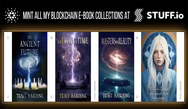 WEB 3 & BLOCKCHAIN : In May 2023 ‘The Twelve Chapters of the Infinite Night’ became Traci’s first NFT E-publication Collection, with US blockchain publisher BOOK.io/ STUFF.io ‘The Ancient Future’ NFT collection, released in December 2024. Traci is the first Australian Fiction Author to publish her work as Decentralised Encrypted Assets (DEAs) on the Cardano Blockchain.